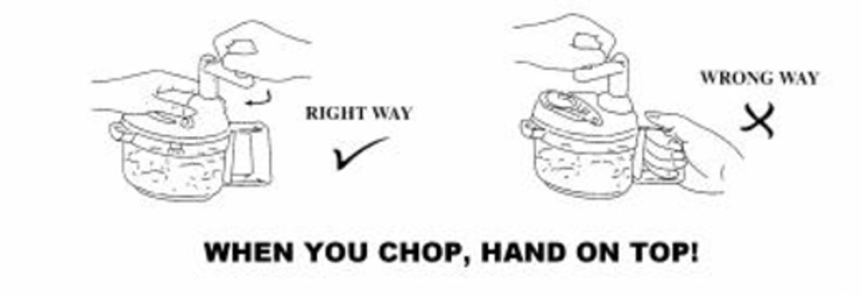 3) The ingredients should never overfill the bowl. Each time when you are adding ingredients, you should turn the arm a quarter turn counter-clockwise, and then continue back in a clockwise direction. This will make chopping a full bowl easier.